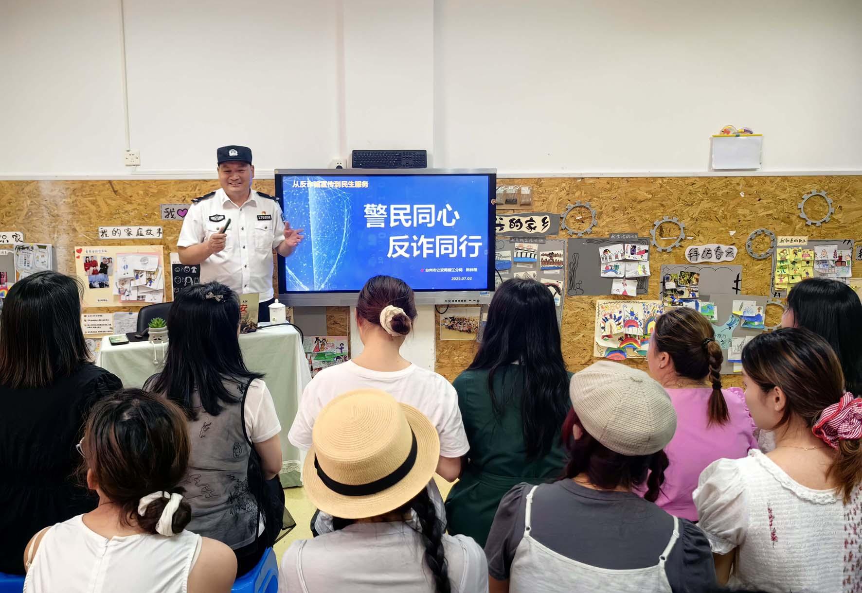 7月2日,全國優(yōu)秀人民警察、二級英模、浙江省臺州市公安局椒江分局海門派出所社區(qū)民警阮林根走進幼兒園,開展以“警民同心 反詐同行”為主題的反詐宣傳活動。