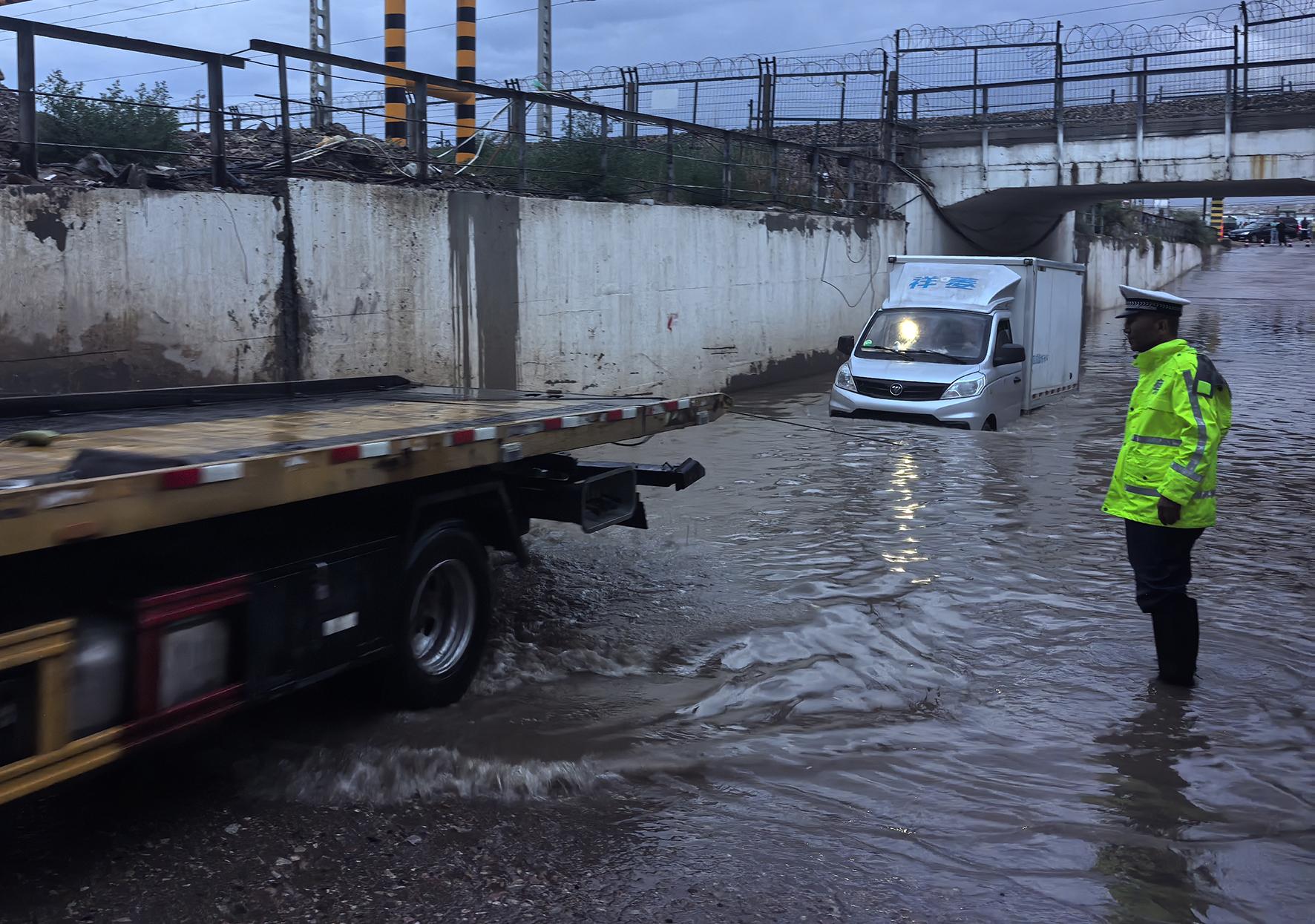 7月8日傍晚,內(nèi)蒙古自治區(qū)巴彥淖爾市烏拉特前旗普降中到大雨。巴彥淖爾市公安局交管支隊(duì)烏拉特前旗大隊(duì)迅速啟動(dòng)應(yīng)急預(yù)案,全警上路執(zhí)勤,保障群眾出行安全。