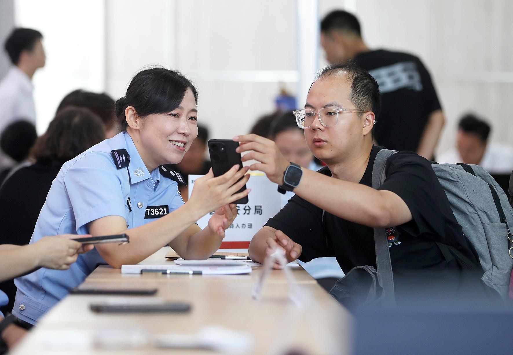 7月11日,湖北省荊門市公安局高新區(qū)·掇刀區(qū)分局掇刀石派出所將戶政窗口前移至企業(yè)園區(qū),通過“湖北公安政務(wù)服務(wù)平臺”為新入職大學(xué)生現(xiàn)場辦理戶籍遷移手續(xù)。