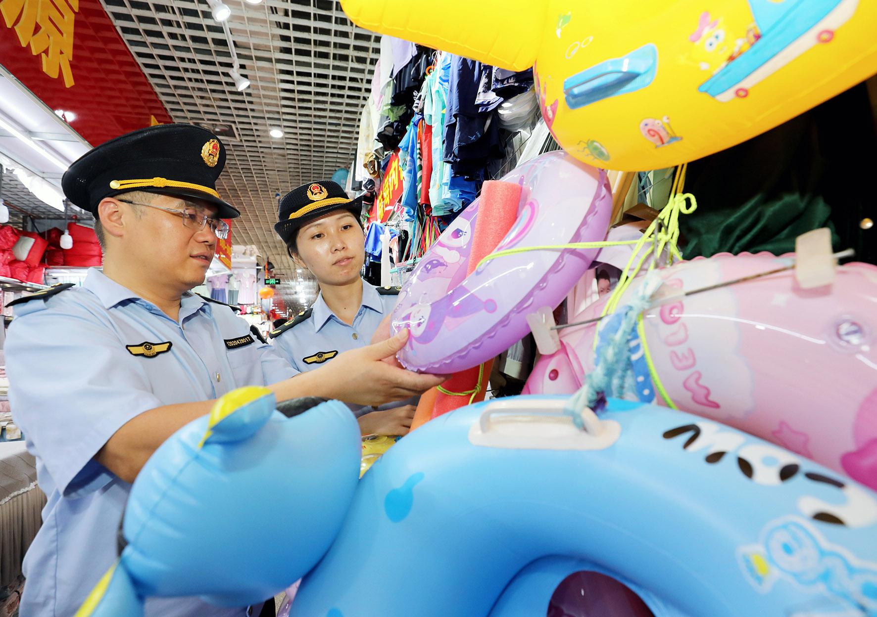 7月20日,安徽省淮北市相山區(qū)市場監(jiān)管部門組織執(zhí)法人員開展夏季游泳用品專項檢查。