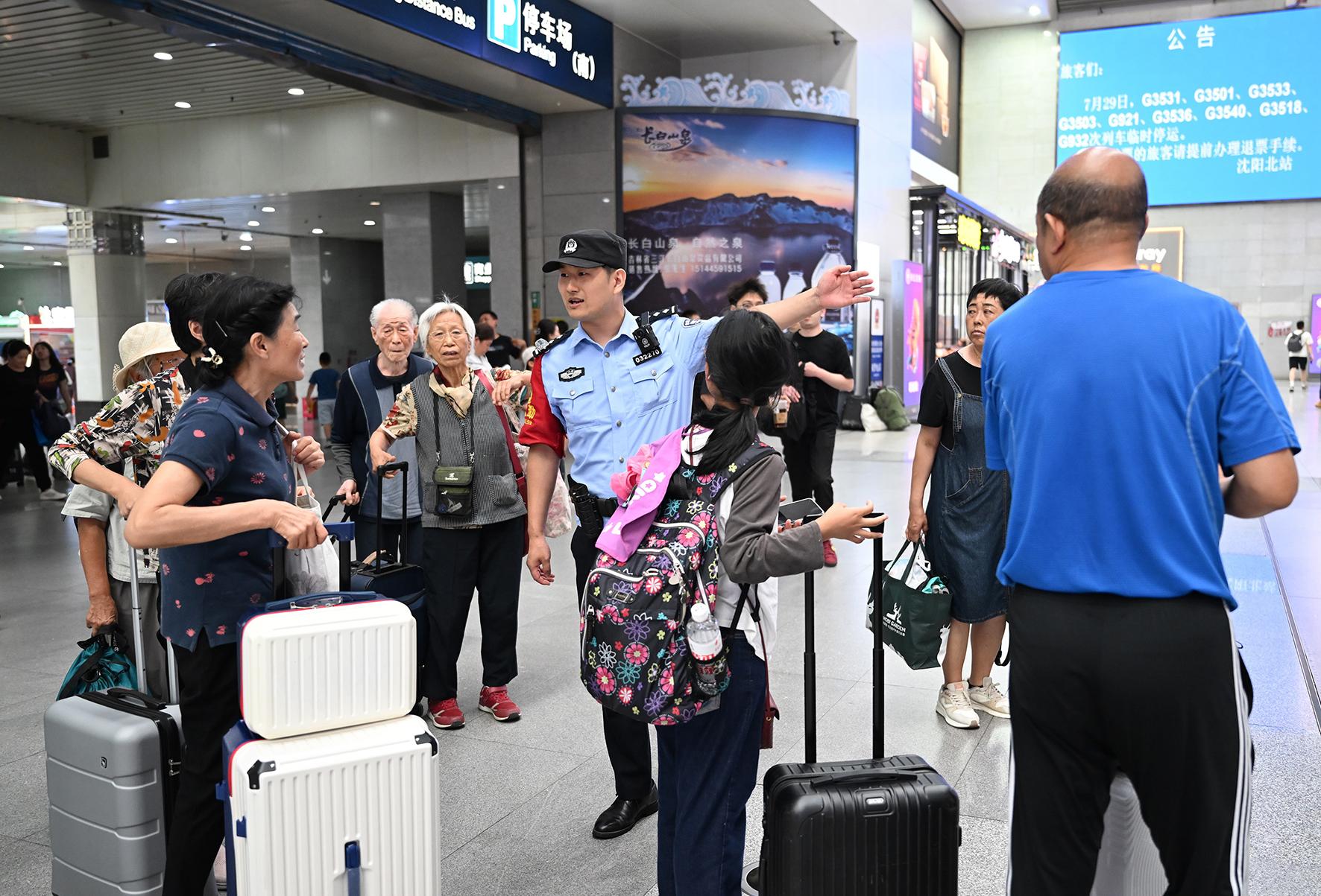 7月29日,沈陽鐵路公安處沈陽北站派出所針對(duì)暑運(yùn)期間學(xué)生流、家庭游旅客流激增的情況,增派警力在候車室開展安全提醒服務(wù)。
