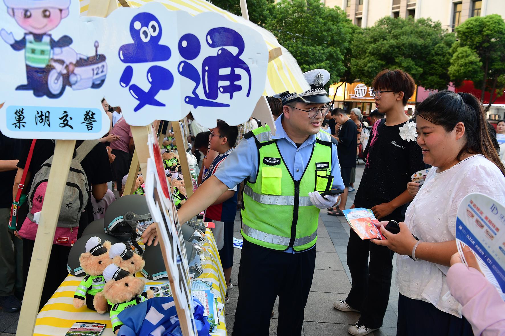 8月3日,安徽省巢湖市公安局交警大隊(duì)在商場(chǎng)門(mén)前開(kāi)展現(xiàn)場(chǎng)送安全大禮活動(dòng),旨在倡導(dǎo)合法合規(guī)出行,共筑電動(dòng)車(chē)騎行安全防線。