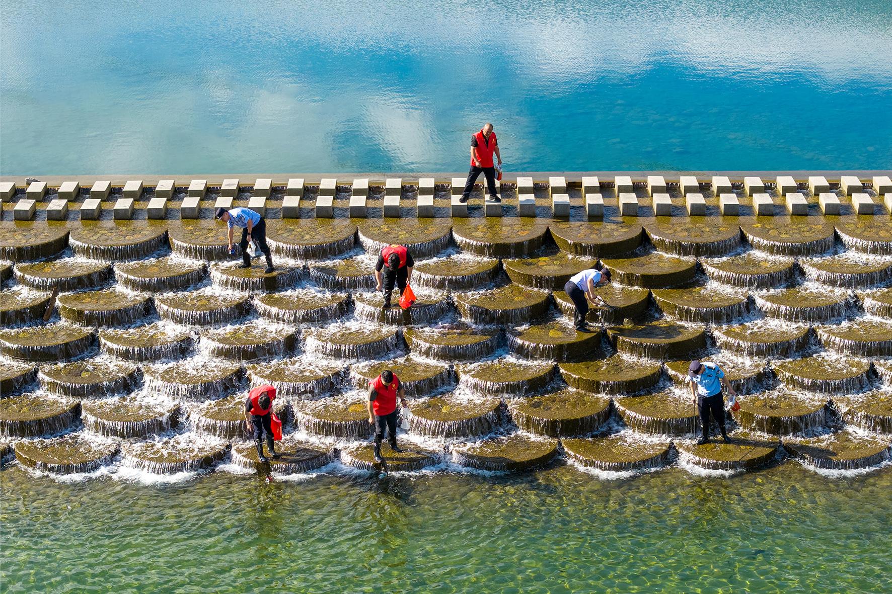 8月14日,浙江省臺(tái)州市公安局黃巖分局寧溪派出所“河道警長”和寧溪鎮(zhèn)黨員志愿者一起在轄區(qū)巡河護(hù)水,清理雜物垃圾,維護(hù)“河暢、水清、景美”的生態(tài)環(huán)境。
