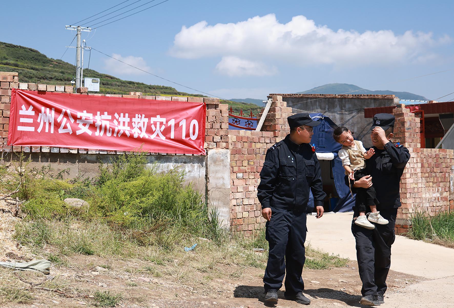 “叔叔來(lái)啦!”8月14日,在甘肅榆中縣新?tīng)I(yíng)鎮(zhèn)八門寺小泥窩村的公安指揮部帳篷里,一聲清脆稚嫩的呼喊打破了忙碌的氛圍,小女孩瑤瑤像一只歡快的小鳥(niǎo),一頭撲進(jìn)蘭州市公安局新區(qū)分局輔警蘇明凱、張?jiān)品宓膽牙铩?/p>