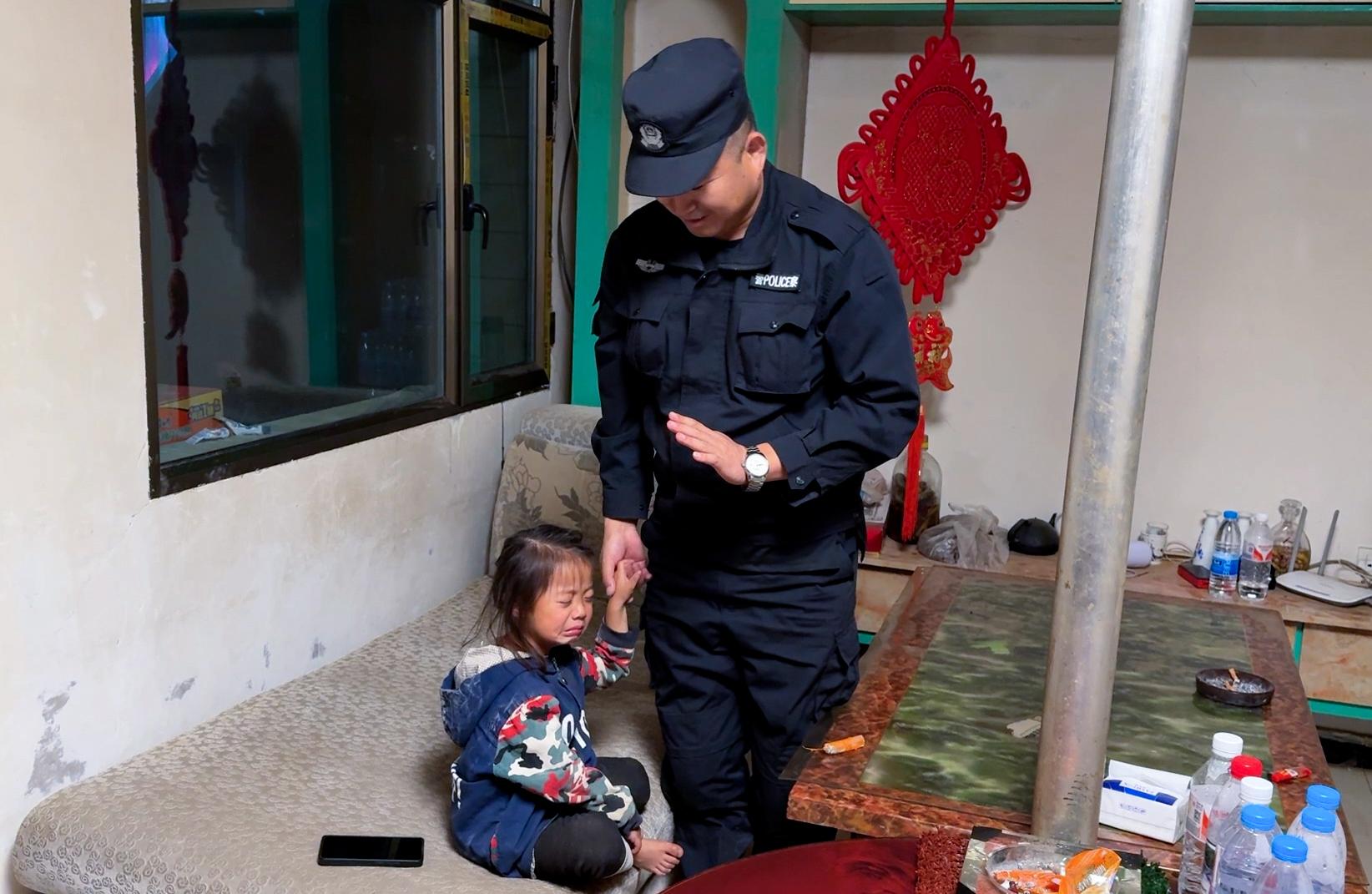 當(dāng)晚,民警們要輪崗去其他點(diǎn)位執(zhí)勤?,幀幖绷耍o緊拉住蘇明凱的手,哭著說(shuō):“叔叔別走!別走嘛……”看著孩子哭得通紅的小臉,蘇明凱柔聲承諾:“瑤瑤乖,叔叔過(guò)幾天就回來(lái)看你,好不好?”瑤瑤抽噎著說(shuō):“那……那我要兩個(gè)‘貼貼’!”