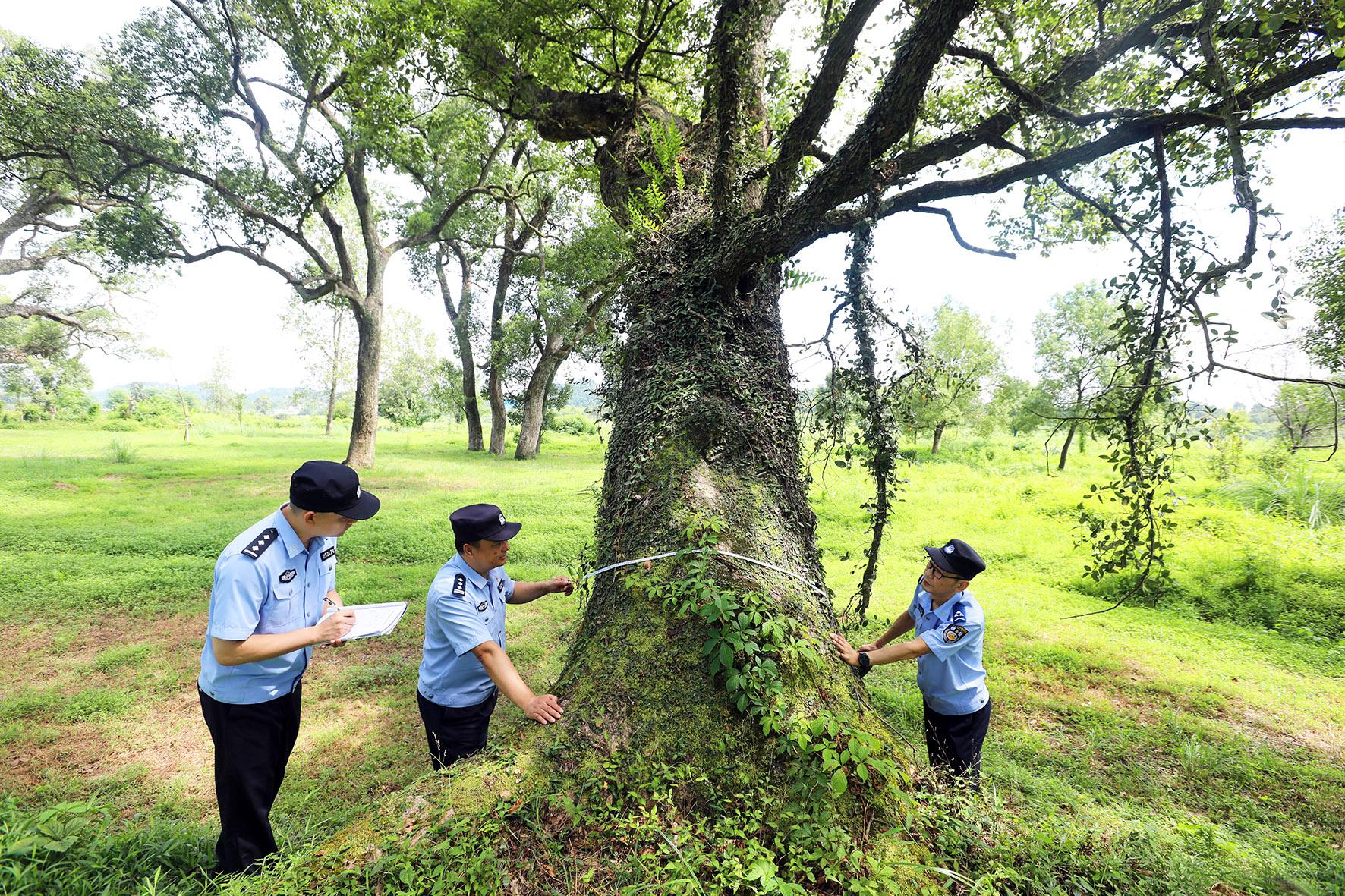 為保護(hù)珍貴的古樹(shù)名木資源,9月10日,江西省分宜縣公安局森林警察大隊(duì)組織民輔警開(kāi)展古樹(shù)名木巡查保護(hù)行動(dòng)。