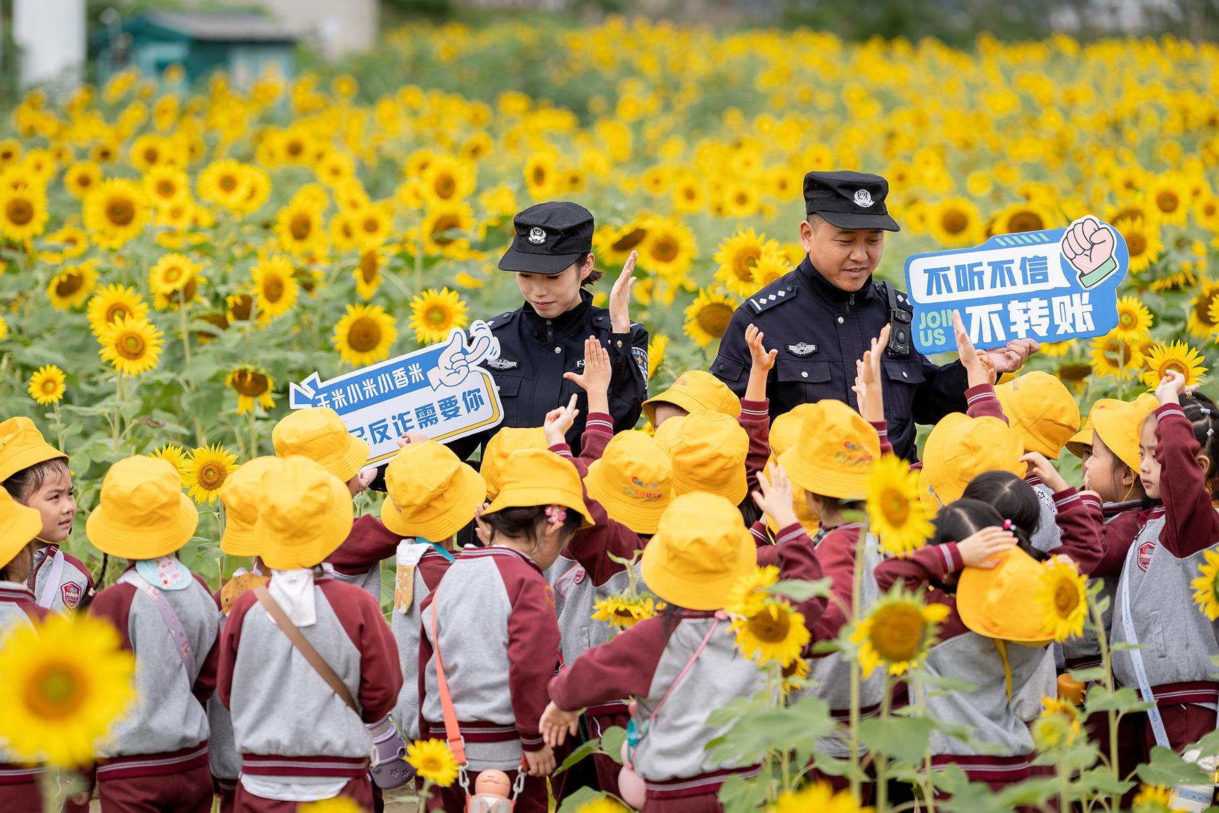 10月17日,四川省綿陽市公安局游仙分局石馬派出所民警在游仙區(qū)紅巖電站涪江畔向小游客們講解防范電信網絡詐騙知識。