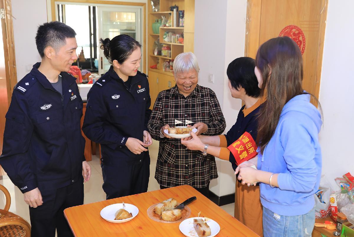 10月28日,浙江省臺(tái)州市公安局黃巖分局民警、義警攜手社區(qū)工作人員走進(jìn)轄區(qū)獨(dú)居老人家中,送上重陽(yáng)糕及老年人防詐手冊(cè)。