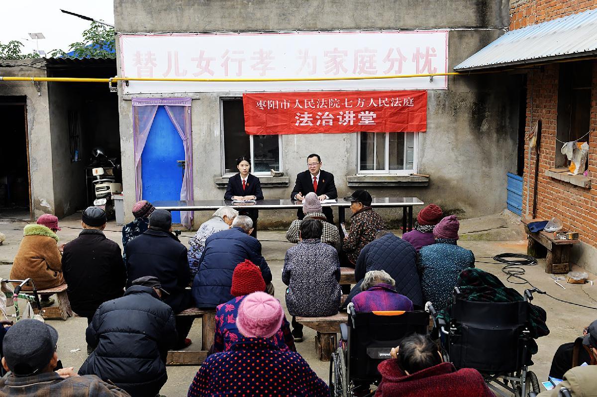10月29日,湖北省棗陽(yáng)市人民法院七方法庭組織干警走進(jìn)七方鎮(zhèn)益家人敬老院,開展“法治講堂”普法宣傳。