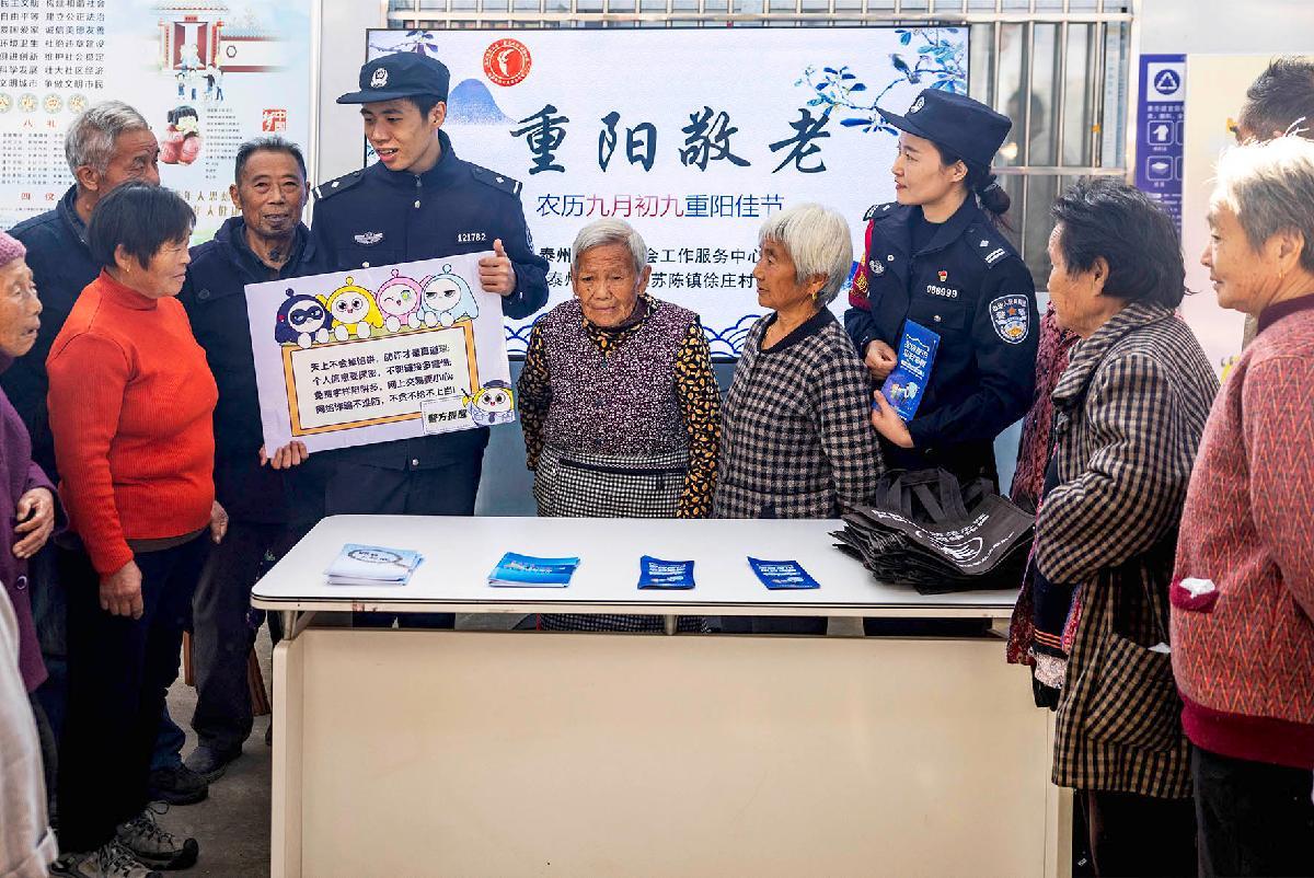 10月28日,南京鐵路公安處泰州站派出所聯(lián)合泰州市公安局海陵分局蘇陳派出所走進(jìn)蘇陳鎮(zhèn)徐莊村委會(huì),開展重陽(yáng)節(jié)普法宣傳。