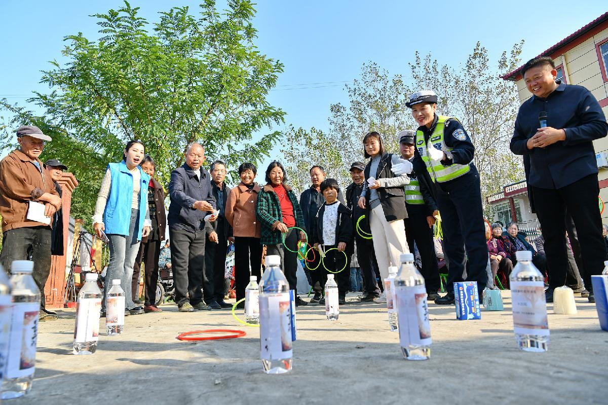 10月28日,安徽省阜南縣公安局交管大隊(duì)民警輔警走進(jìn)黃崗鎮(zhèn)耿寨村開展“重陽(yáng)節(jié)送交通安全知識(shí)”活動(dòng)。