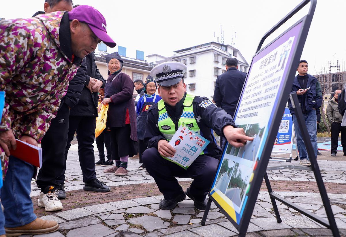 12月3日,貴州省丹寨縣公安局交警大隊(duì)利用農(nóng)村趕集日,組織民輔警在揚(yáng)武鎮(zhèn)金揚(yáng)廣場(chǎng)開(kāi)展道路交通安全宣傳。