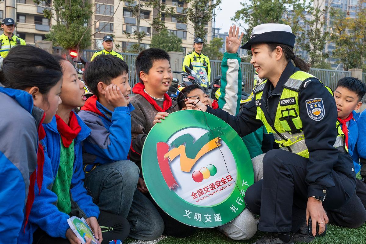 12月2日是第十四個“全國交通安全日”,貴州省赤水市公安局交警大隊民警走進(jìn)校園,向小朋友們普及交通安全知識。