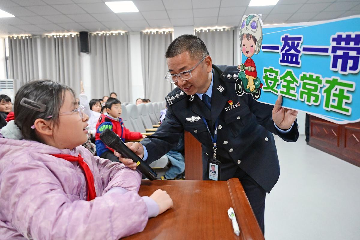 12月2日,山東省濟(jì)南市公安局市中分局六里山派出所民警來到濟(jì)南市玉函小學(xué),開展“全國交通安全日”主題宣傳。