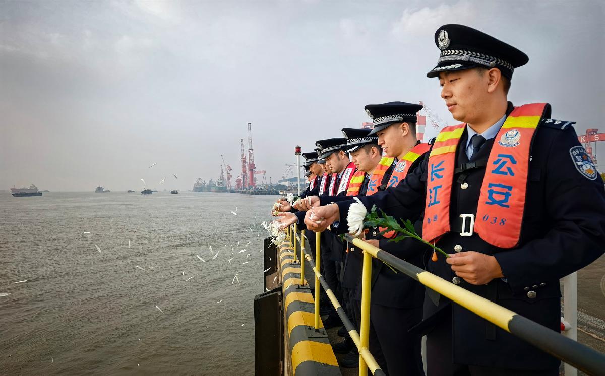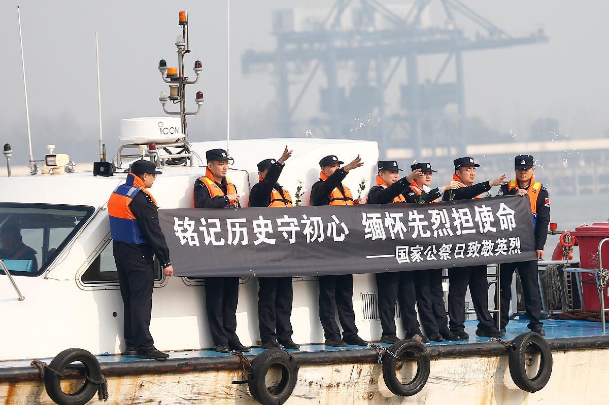 12月13日是第十二個南京大屠殺死難者國家公祭日。12月11日,南京港出入境邊防檢查站聯(lián)合長江航運公安局南京分局棲霞派出所在長江南京段新生圩水域舉行“銘記歷史守初心 緬懷先烈擔使命”主題祭奠活動。