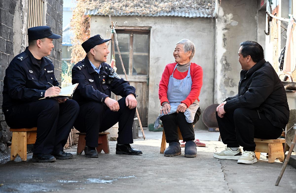 12月16日,安徽省馬鞍山市當涂縣公安局湖陽派出所民警輔警走訪轄區(qū)群眾,宣傳冬季安全防范知識。