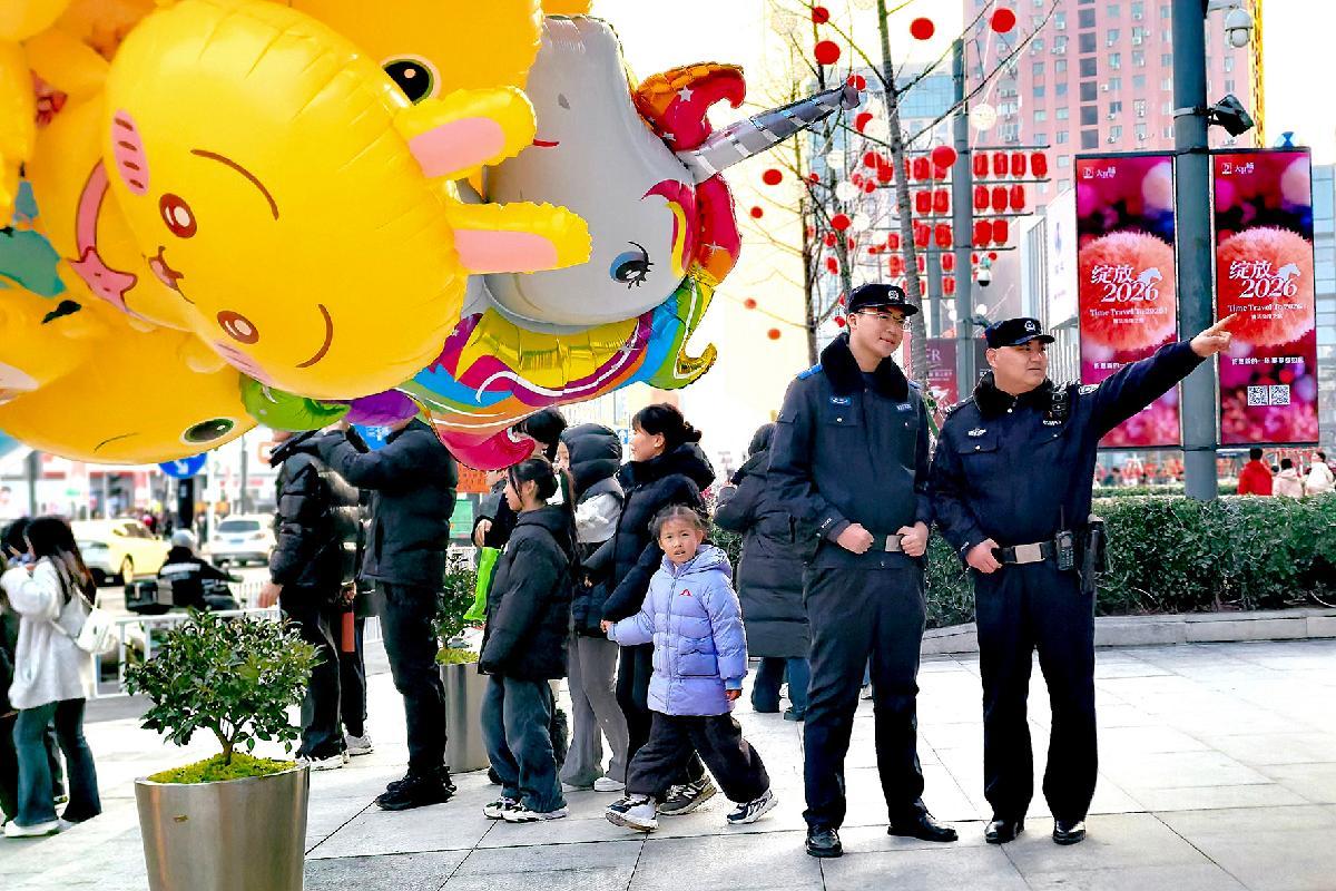 1月1日,河南省鄭州市公安局金水分局杜嶺派出所民輔警在轄區(qū)廣場(chǎng)執(zhí)勤巡邏。
