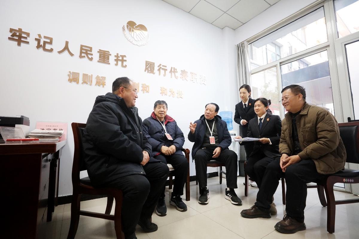 圖為法官與人大代表一起對案件進(jìn)行現(xiàn)場調(diào)解。