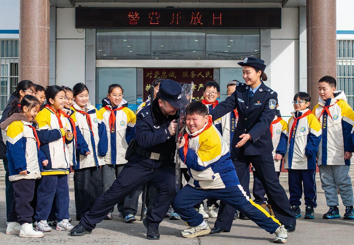 1月10日,江蘇省泰州市公安局海陵分局九龍派出所舉行警營開放日活動,邀請九龍實驗學(xué)校學(xué)生現(xiàn)場體驗警用裝備。
