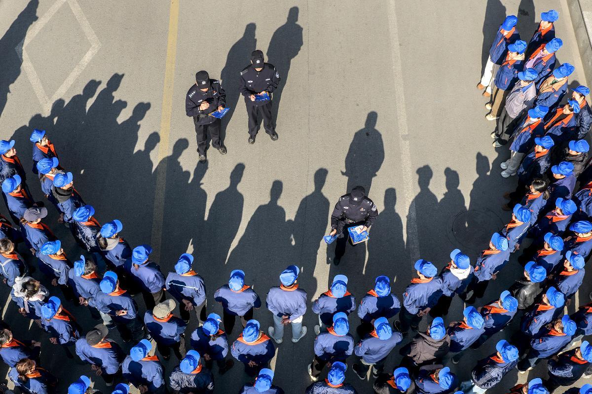 圖為1月13日,民警在一家企業(yè)進(jìn)行反詐、安全生產(chǎn)等知識(shí)宣講。