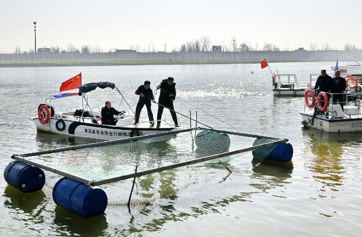 1月15日,安徽省阜南縣、霍邱縣、潁上縣農(nóng)業(yè)農(nóng)村行政執(zhí)法大隊聯(lián)合河南省信陽市、淮濱縣、固始縣農(nóng)業(yè)農(nóng)村行政執(zhí)法大隊開展冬季禁捕執(zhí)法專項行動,重點打擊跨區(qū)域非法捕撈、電魚行為,保護淮河生態(tài)環(huán)境及水生生物資源。
