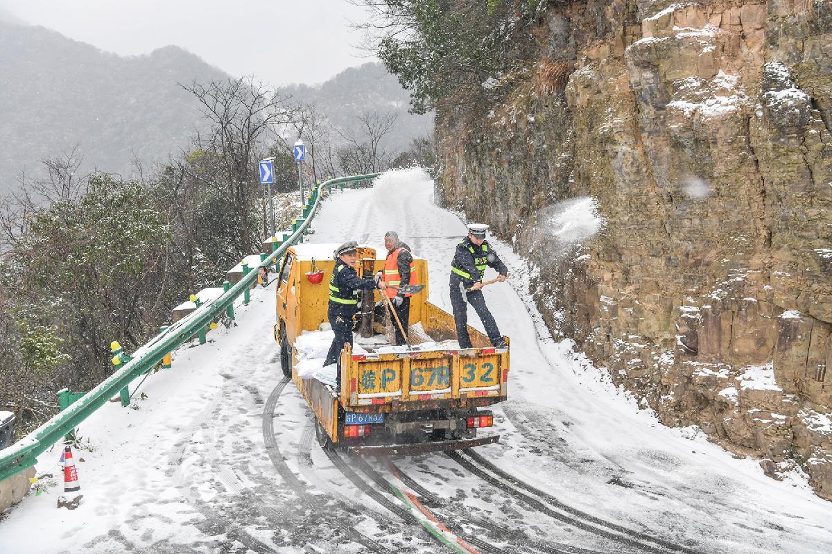 1月20日,安徽省涇縣出現(xiàn)降雪降溫天氣。涇縣公安局交管大隊(duì)組織警力加強(qiáng)S345省道巡邏疏導(dǎo),全力保障路面安全暢通。