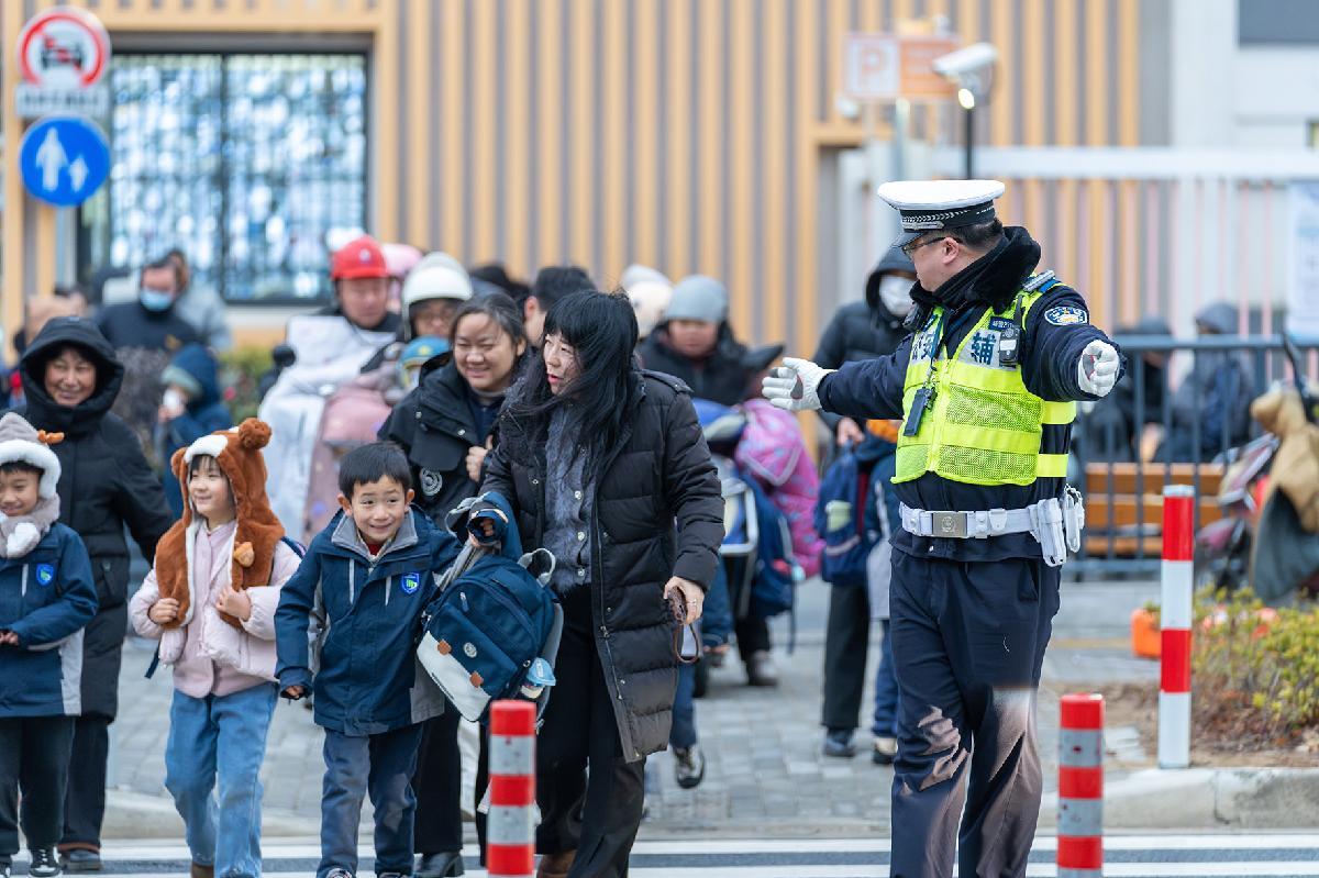 1月19日,上海地區(qū)迎來一輪寒潮降溫天氣。上海市公安局崇明分局交管支隊(duì)及時(shí)部署警力在學(xué)校周邊開展護(hù)校安園和交通疏導(dǎo)工作。