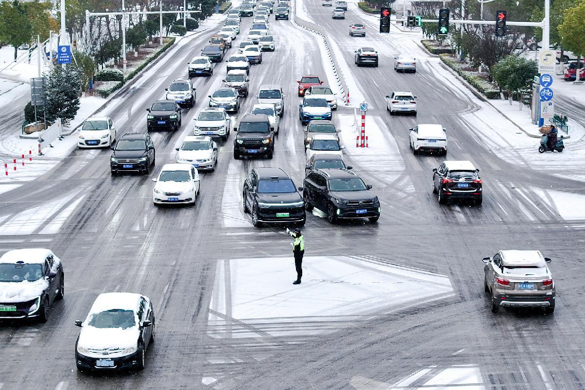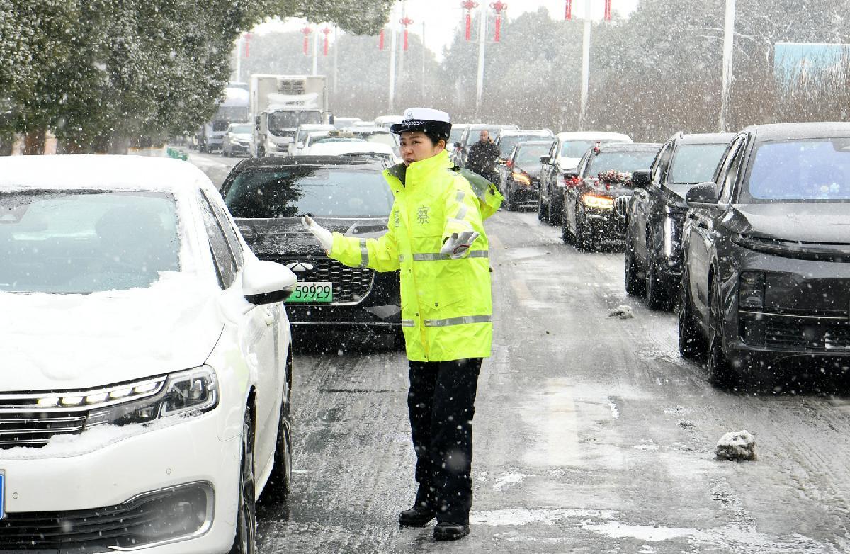 1月20日,安徽省舒城縣迎來入冬最強(qiáng)降雪。舒城縣公安局交管大隊(duì)顯性用警,在轄區(qū)重點(diǎn)路段、路口、橋梁等處指揮疏導(dǎo)交通,主動(dòng)為民紓困,全力保障路面安全暢通。