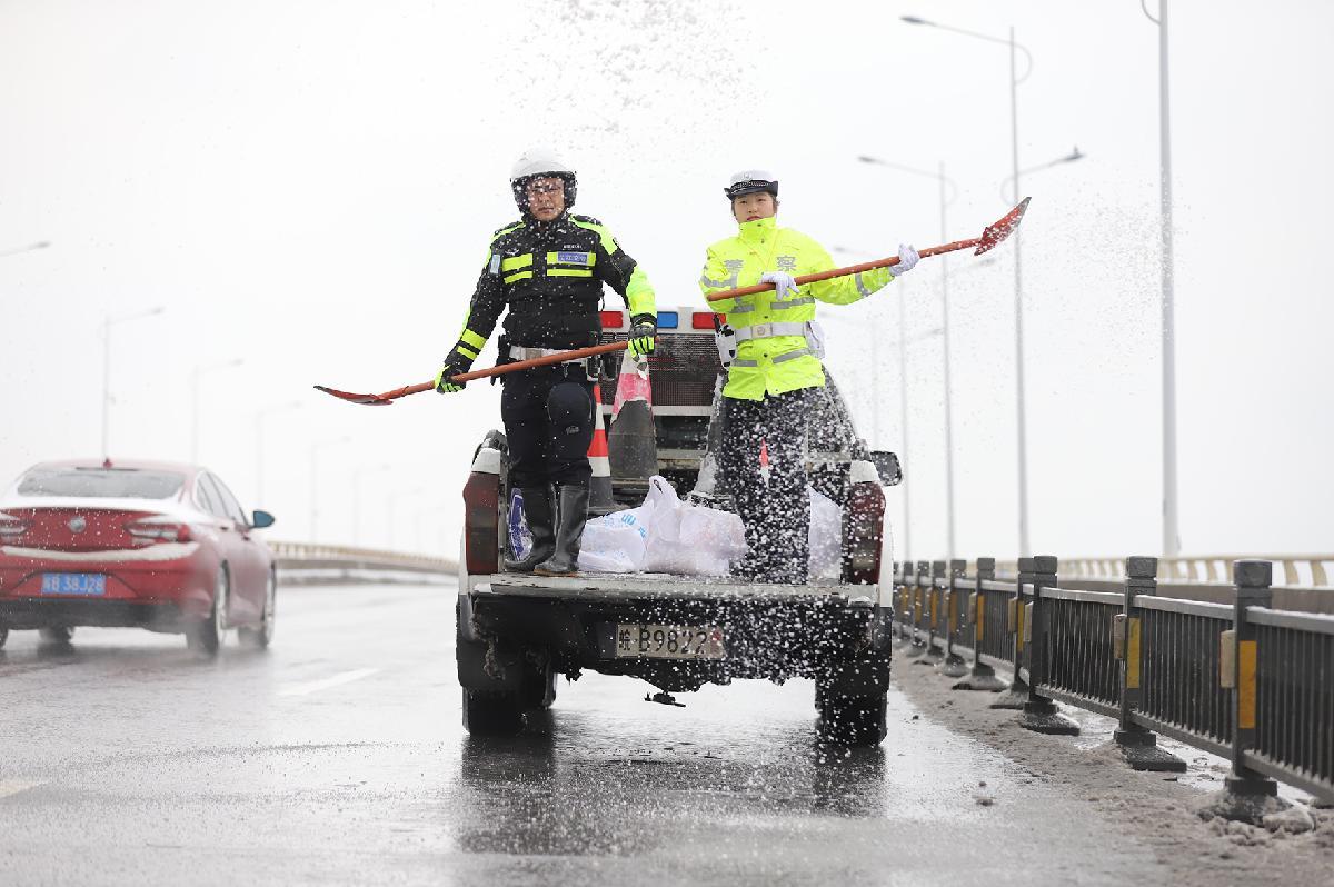 1月20日,安徽省巢湖市公安局交管大隊(duì)全警動(dòng)員,全力應(yīng)對(duì)降雪、結(jié)冰天氣,加強(qiáng)路面交通安全管理,確保安全暢通。