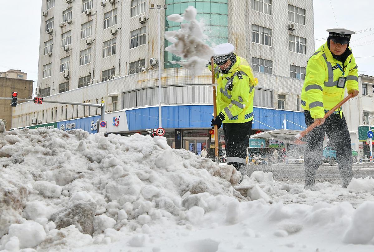 1月20日,安徽省阜南縣大范圍降雪。阜南縣公安、交通運(yùn)輸、城市管理等多部門聯(lián)動(dòng)保障交通暢通。