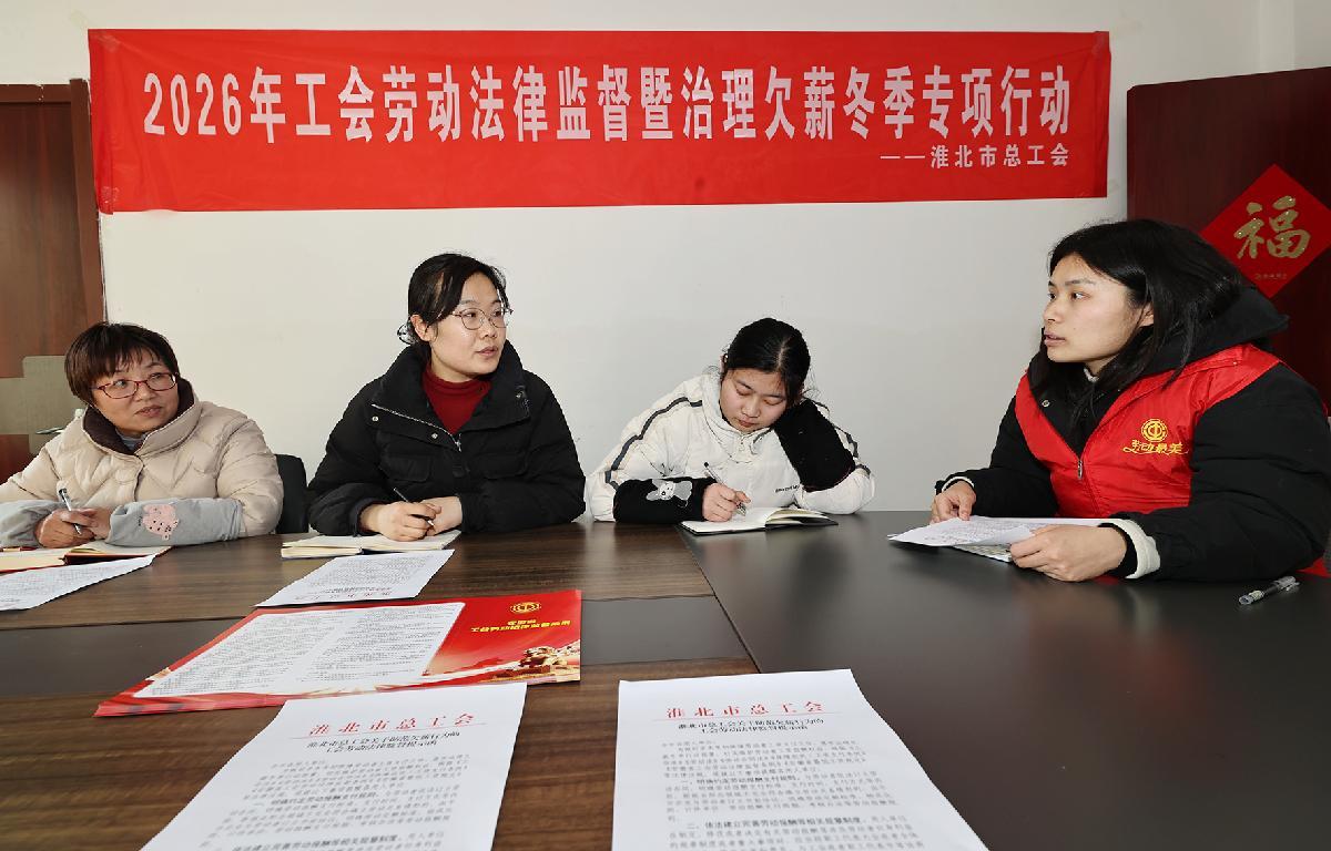 1月22日,安徽省淮北市總工會組織工會勞動法律監(jiān)督員深入相山經(jīng)濟開發(fā)區(qū)重點企業(yè),開展2026年工會勞動法律監(jiān)督暨治理冬季欠薪專項行動。