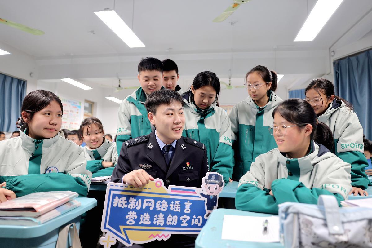 1月22日,山東省棗莊市公安局薛城分局網(wǎng)警大隊民警緊扣“冬季守護”專項行動,在轄區(qū)中小學開展防范網(wǎng)絡謠言宣講活動。