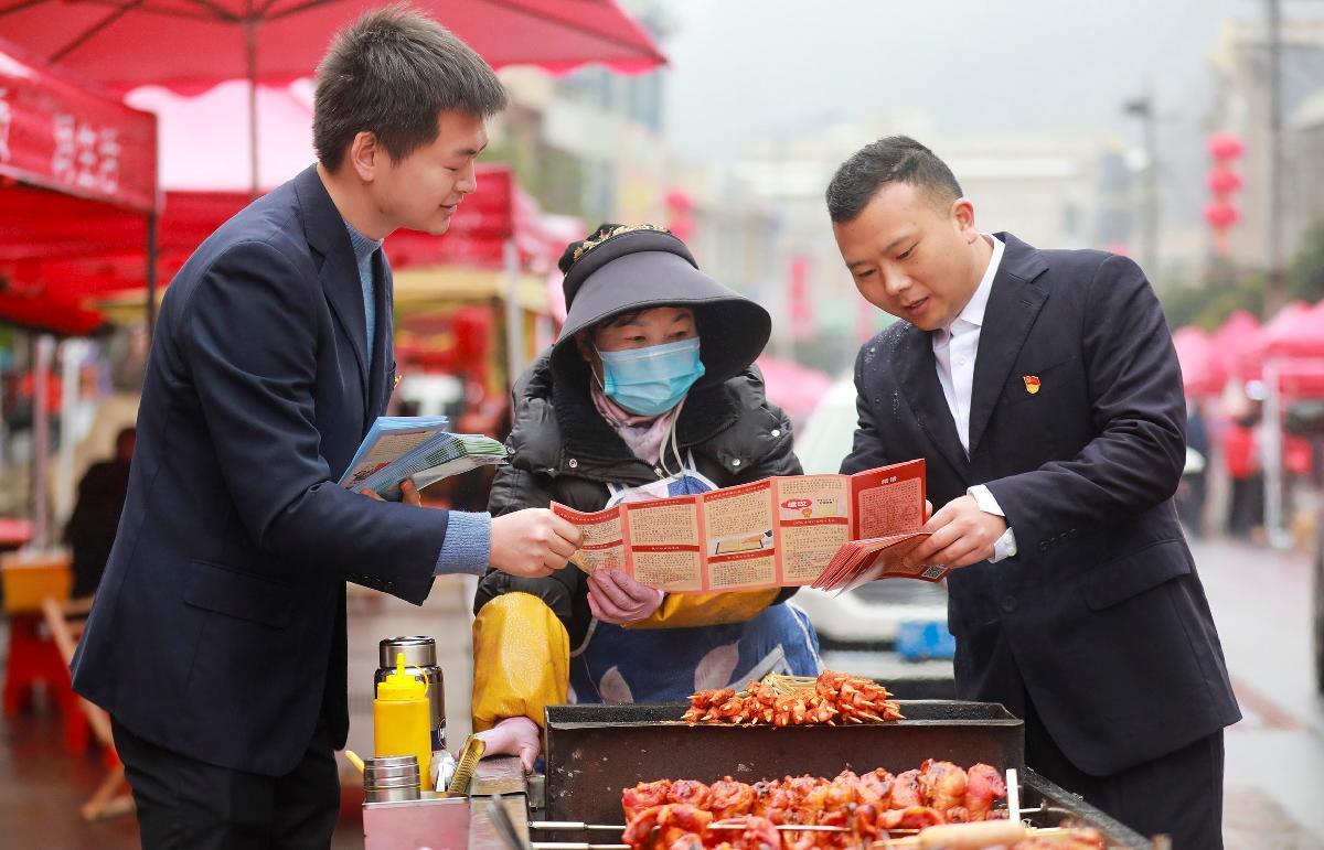 圖為2月3日,司法工作者在金蘭鎮(zhèn)為趕場(chǎng)群眾講解法律知識(shí)。