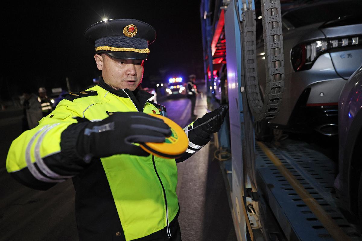 2月4日,安徽省合肥市公安局交管支隊(duì)聯(lián)合路政執(zhí)法等部門在境內(nèi)高速服務(wù)區(qū)開展轎運(yùn)車違法查處“利劍行動(dòng)”,全力保障春運(yùn)期間道路安全暢通。