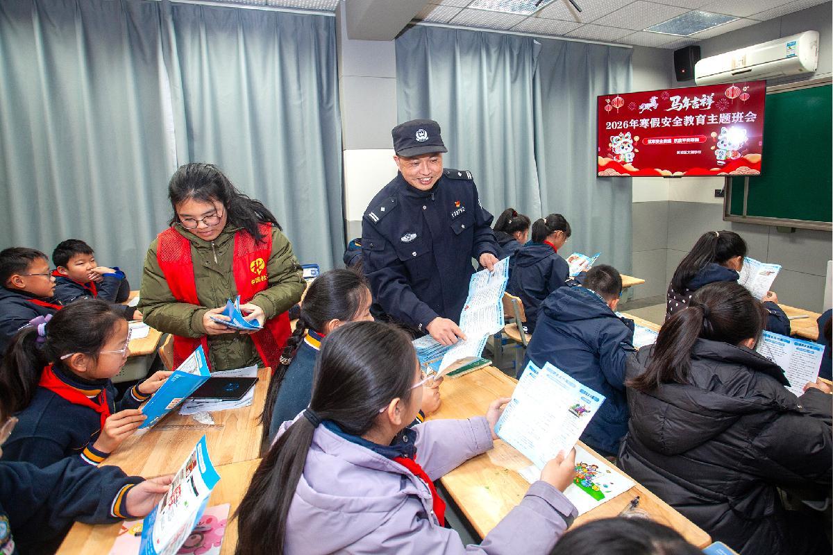 2月6日,浙江省臺州市公安局黃巖分局城東派出所民警和硯池社區(qū)志愿者一起走進轄區(qū)小學,為即將開始寒假生活的小學生組織了一次安全教育主題班會。