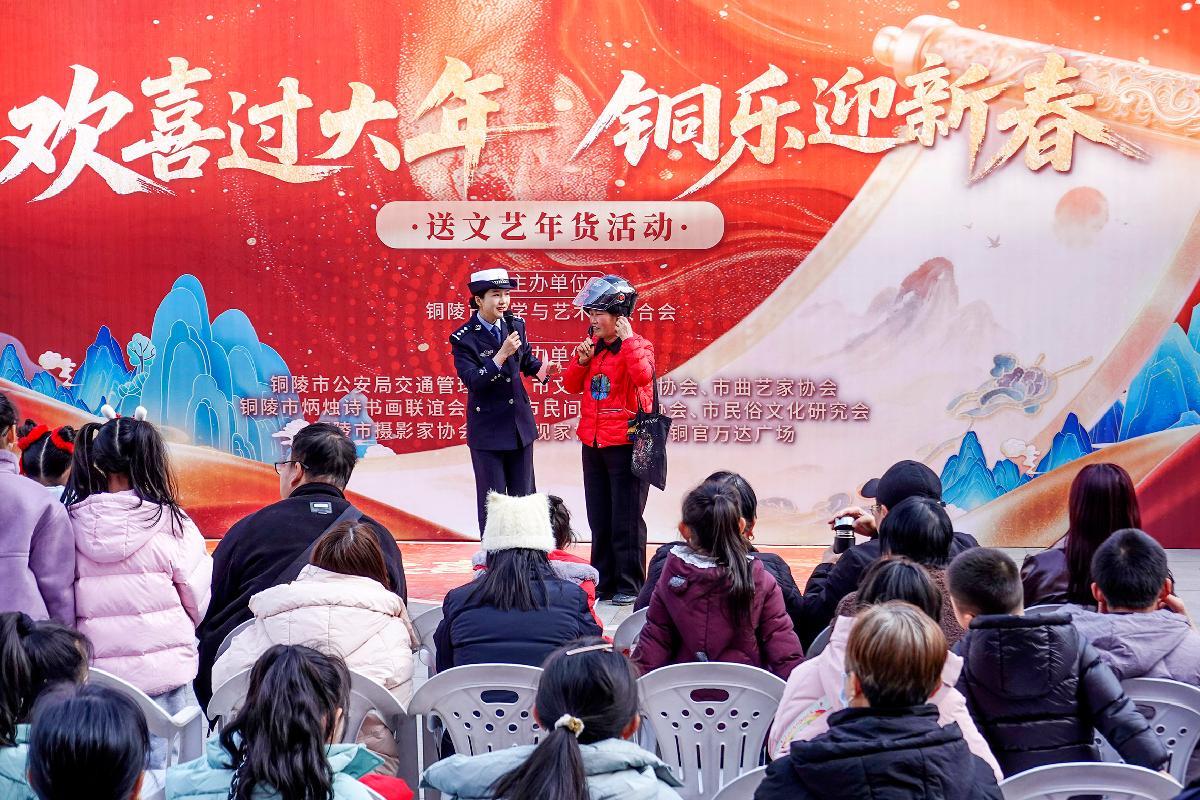 2月11日,安徽省銅陵市公安局交管支隊(duì)宣傳民警在“歡喜過(guò)大年 銅樂(lè)迎新春”銅都文藝集市活動(dòng)現(xiàn)場(chǎng),通過(guò)交通安全有獎(jiǎng)競(jìng)答、宣傳展臺(tái)講解、警民共創(chuàng)平安春聯(lián)等形式,將安全出行知識(shí)融入新春祝福,讓市民在喜慶氛圍中提升交通安全意識(shí),共度平安祥和春節(jié)。