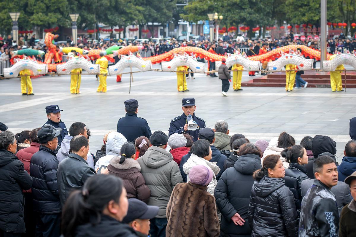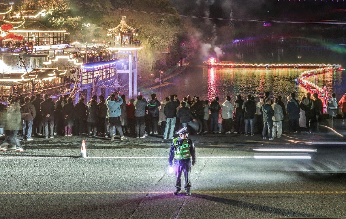 3月3日,安徽省涇縣公安局民警在2026元宵民俗巡游展演活動現(xiàn)場維持秩序。