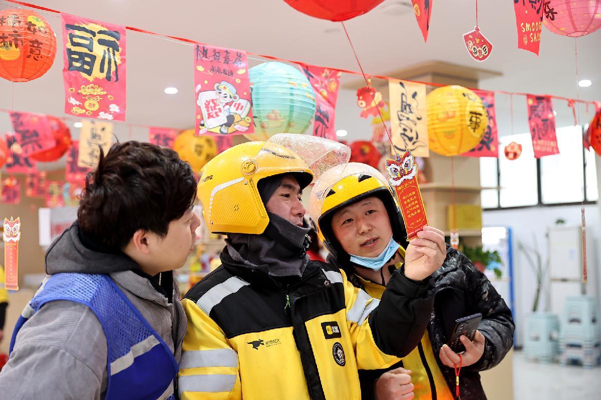 3月1日,安徽省淮北市相山東街道總工會(huì)在工會(huì)驛站舉辦快遞外賣員元宵燈謎會(huì)。主辦方將交通法規(guī)、勞動(dòng)權(quán)益保障等知識(shí)融入燈謎,讓快遞小哥、外賣騎手在猜謎闖關(guān)的歡樂(lè)氛圍中學(xué)習(xí)法律知識(shí),感悟傳統(tǒng)文化。
