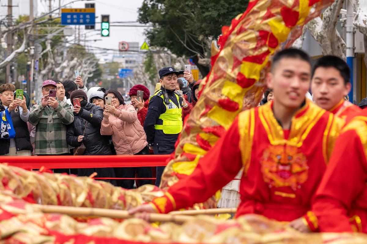 3月3日,上海市公安局崇明分局民輔警在城橋鎮(zhèn)元宵節(jié)文化活動(dòng)現(xiàn)場(chǎng)執(zhí)勤。