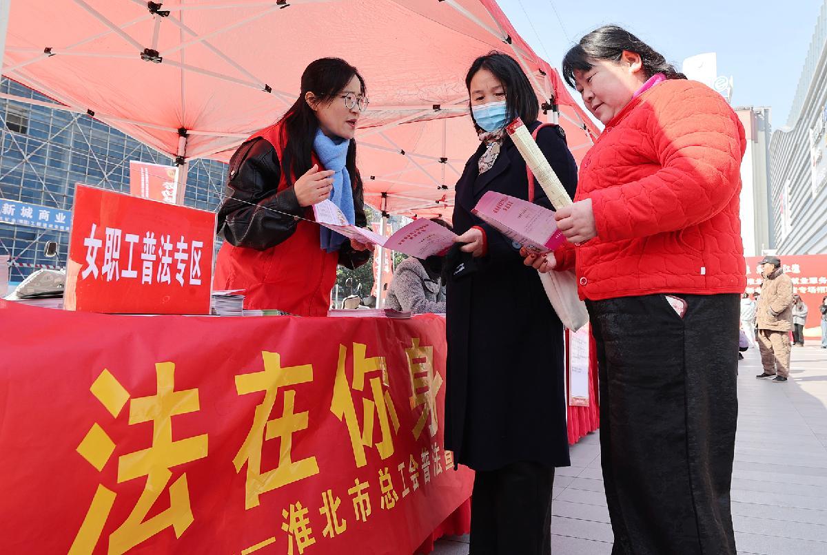 3月13日,安徽省淮北市總工會(huì)組織普法志愿者在就業(yè)招聘會(huì)現(xiàn)場(chǎng)向廣大女職工宣傳法律知識(shí)。