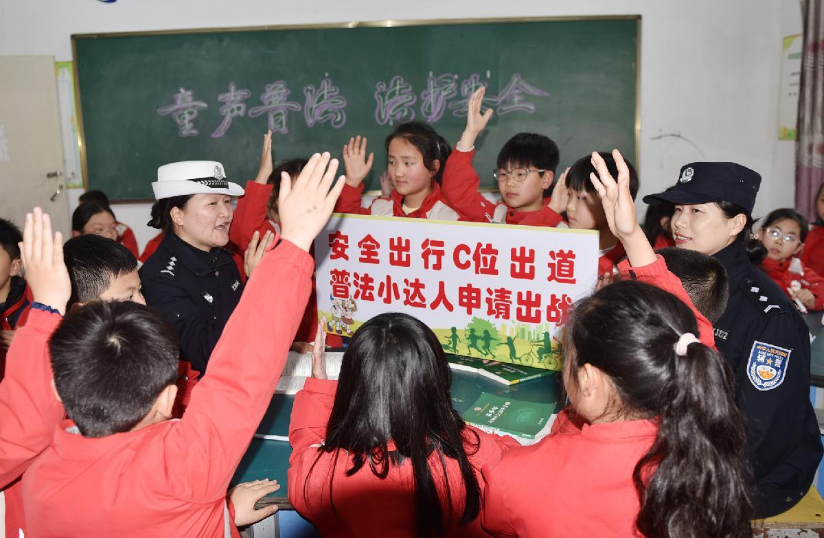 3月23日,安徽省宿松縣公安局交通管理大隊(duì)走進(jìn)松滋小學(xué),通過情景模擬,輔導(dǎo)“童聲普法社團(tuán)”的小小普法員開展交通安全普法宣傳。