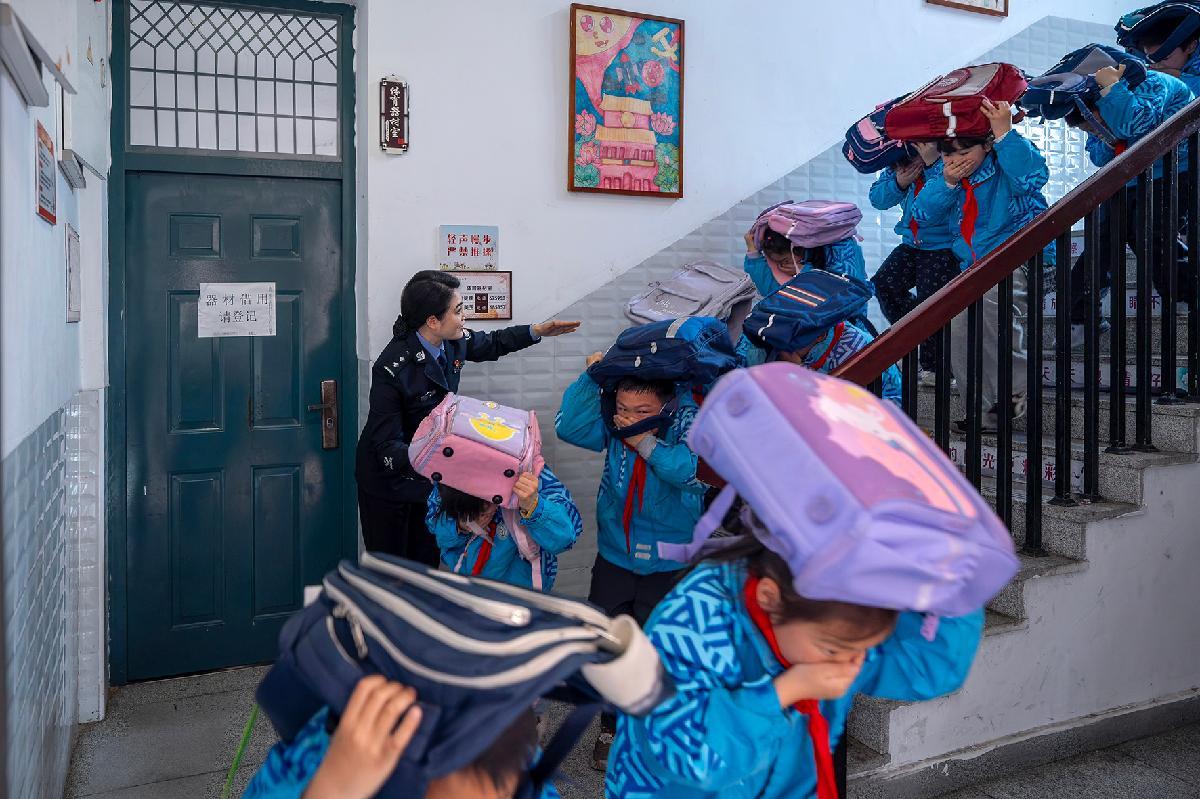 3月30日,是第31個(gè)全國(guó)中小學(xué)生安全教育日。山東省棗莊市市中區(qū)東湖小學(xué)學(xué)生在消防救援人員的引導(dǎo)下進(jìn)行校車應(yīng)急逃生演練活動(dòng)。
