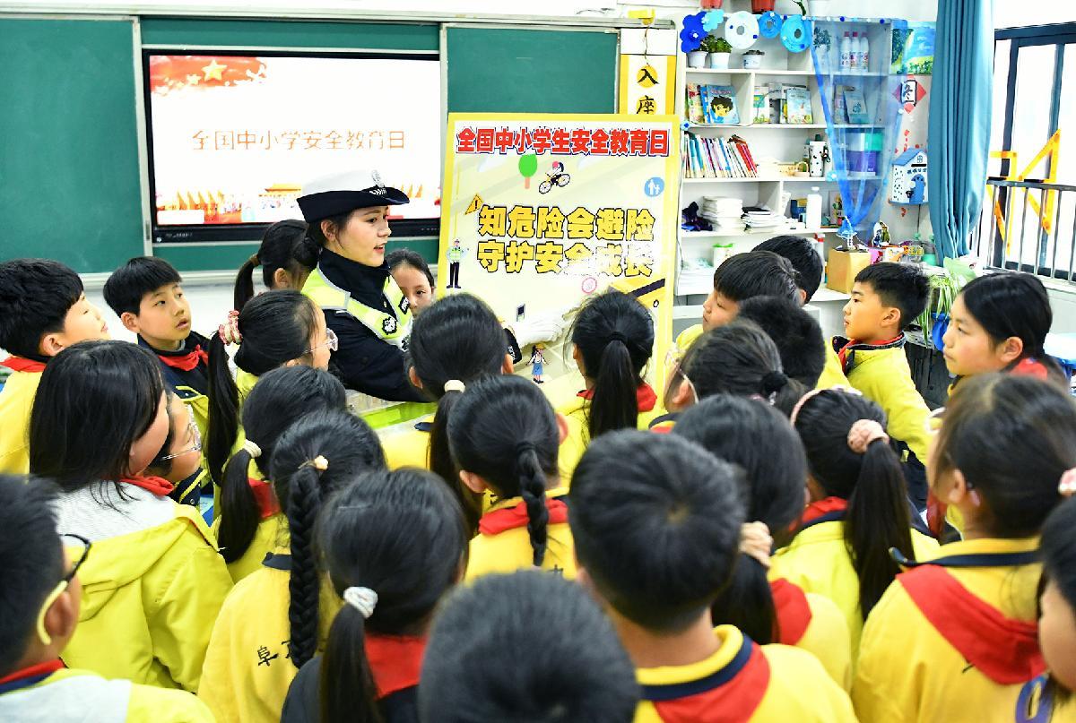 3月30日,安徽省阜南縣公安局交管大隊(duì)組織民輔警走進(jìn)轄區(qū)中小學(xué)校,開展全國(guó)中小學(xué)生安全教育日宣傳活動(dòng)。