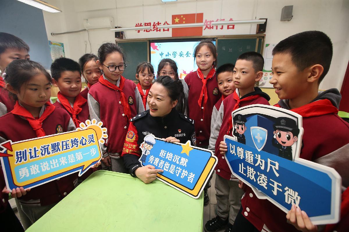 3月30日,江蘇省徐州市鼓樓區(qū)人民法院法官在第二十四中學(xué)為學(xué)生講解如何防范欺凌行為,增強(qiáng)學(xué)生安全防范意識(shí)和自我保護(hù)能力。