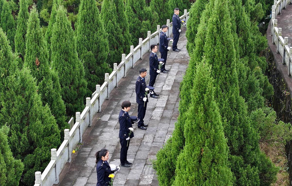 4月1日,浙江寧波出入境邊防檢查站執(zhí)勤九隊(duì)與駐地企業(yè)聯(lián)合開(kāi)展以“賡續(xù)英烈精神 勇?lián)鷷r(shí)代使命”為主題的清明祭掃活動(dòng)。