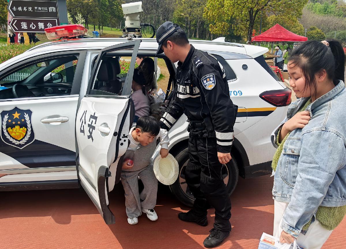 4月4日,安徽省蕪湖市公安局鏡湖分局特巡警大隊(duì)民輔警在公園景區(qū)巡邏時(shí)遇到游客求助:其孩子因腳踝扭傷無法行走。民輔警立即將一家四口扶上警車,安全送到目的地。