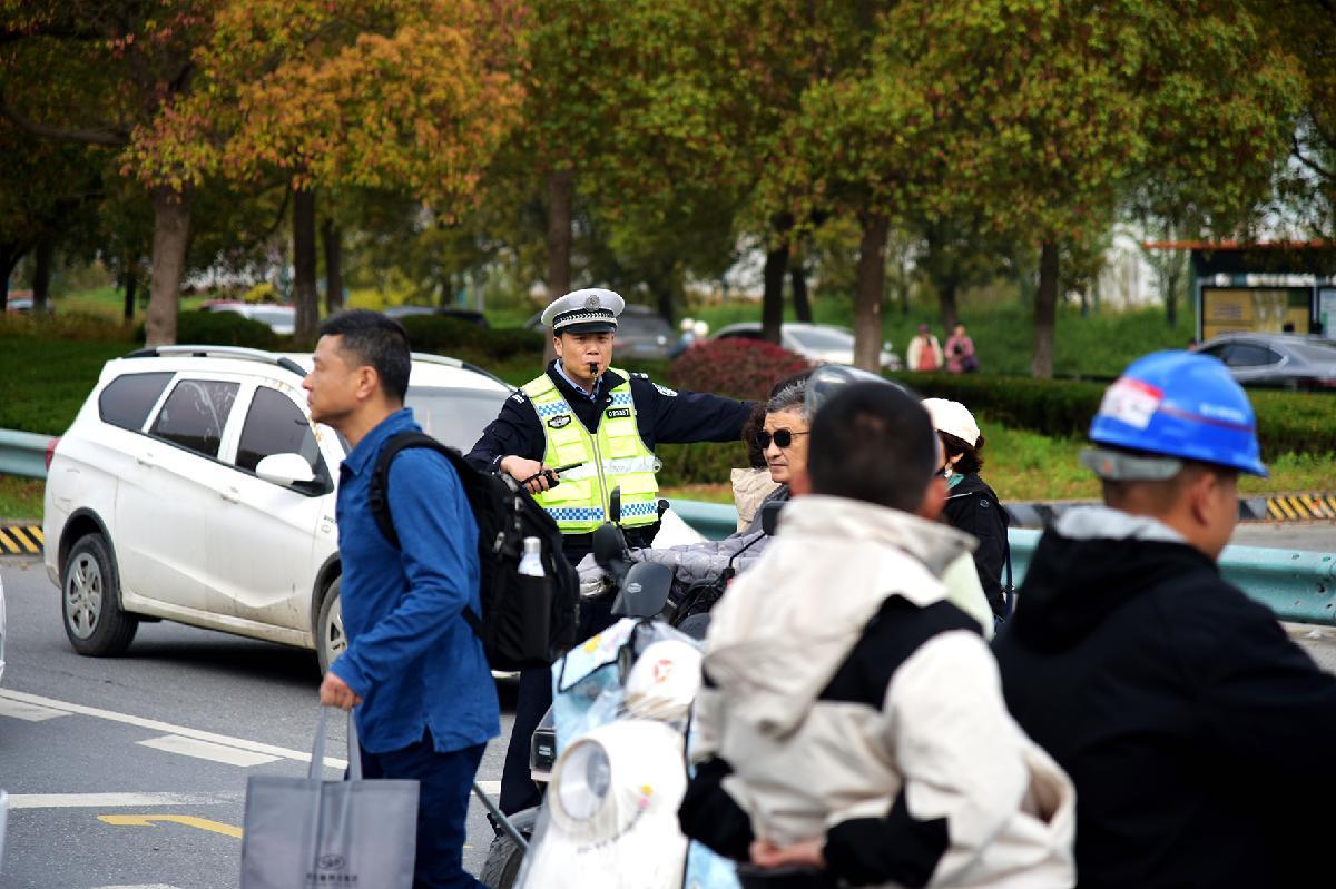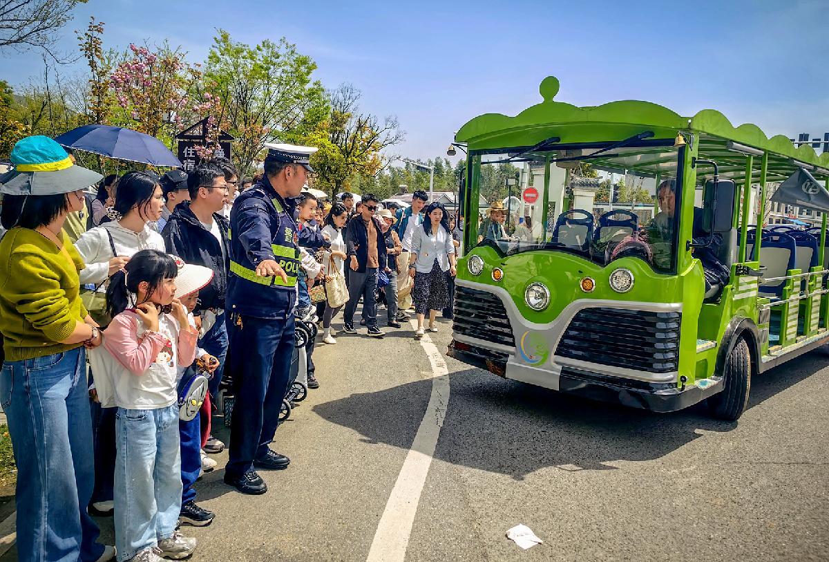 4月5日,安徽省涇縣公安局交管大隊(duì)民警在皖南野生動(dòng)物園景區(qū)交通樞紐維持交通秩序。