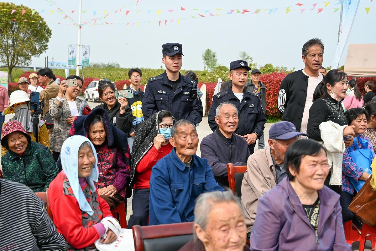 4月6日,安徽省和縣公安局民輔警在香泉梨花節(jié)演出現(xiàn)場(chǎng)執(zhí)勤。