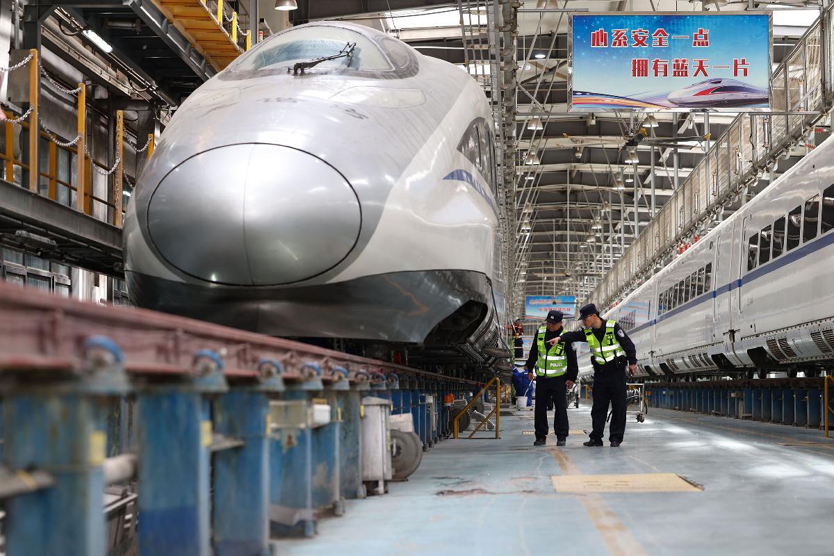 4月5日,石家莊鐵路公安處民警對(duì)石家莊動(dòng)車所場(chǎng)區(qū)進(jìn)行治安巡查。