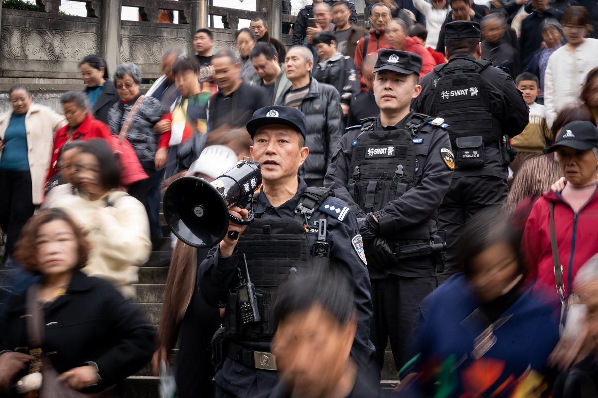 3月25日,四川省綿陽市公安局組織民輔警護(hù)航安州區(qū)“中國春社·雎水踩橋”民俗活動。